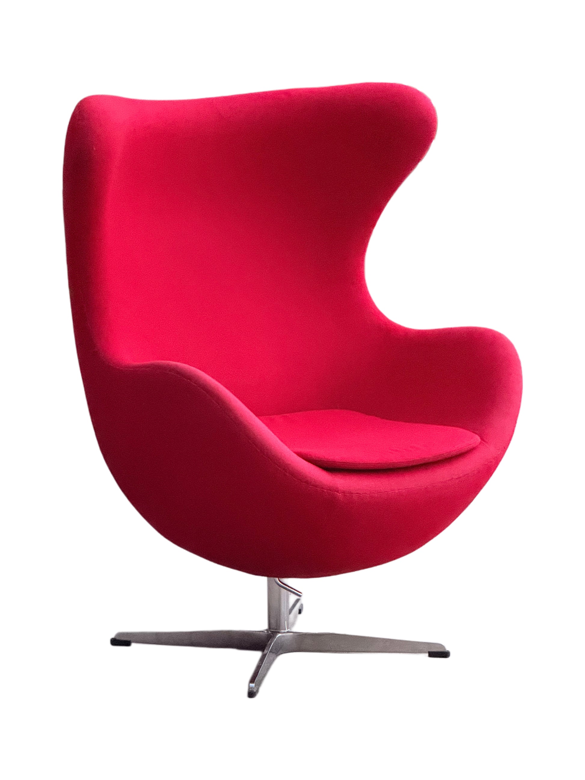 After Arne Jacobsen Egg Chair Model 3316 - Fritz Hansen Style Red Swivel Lounge Chair.