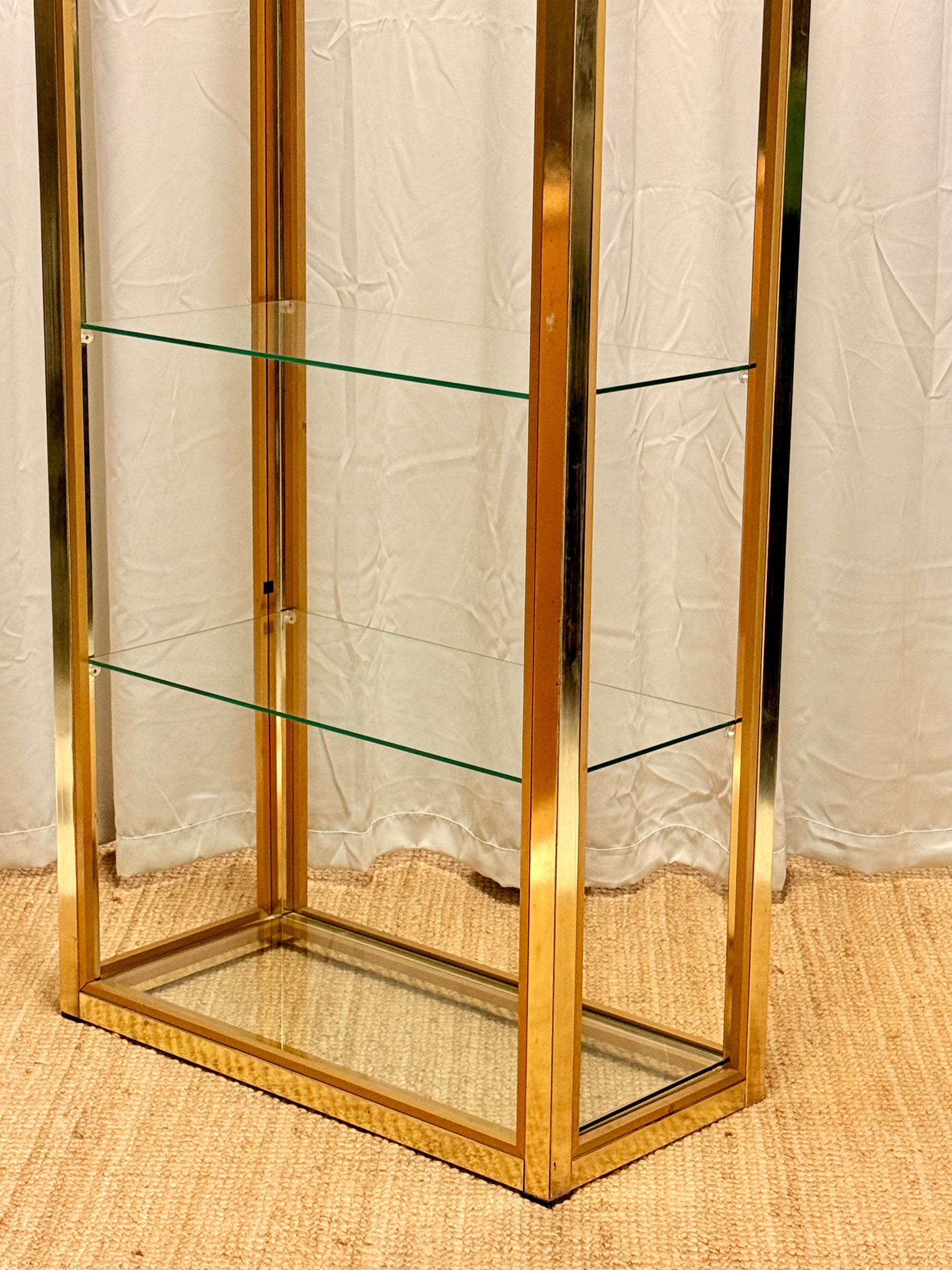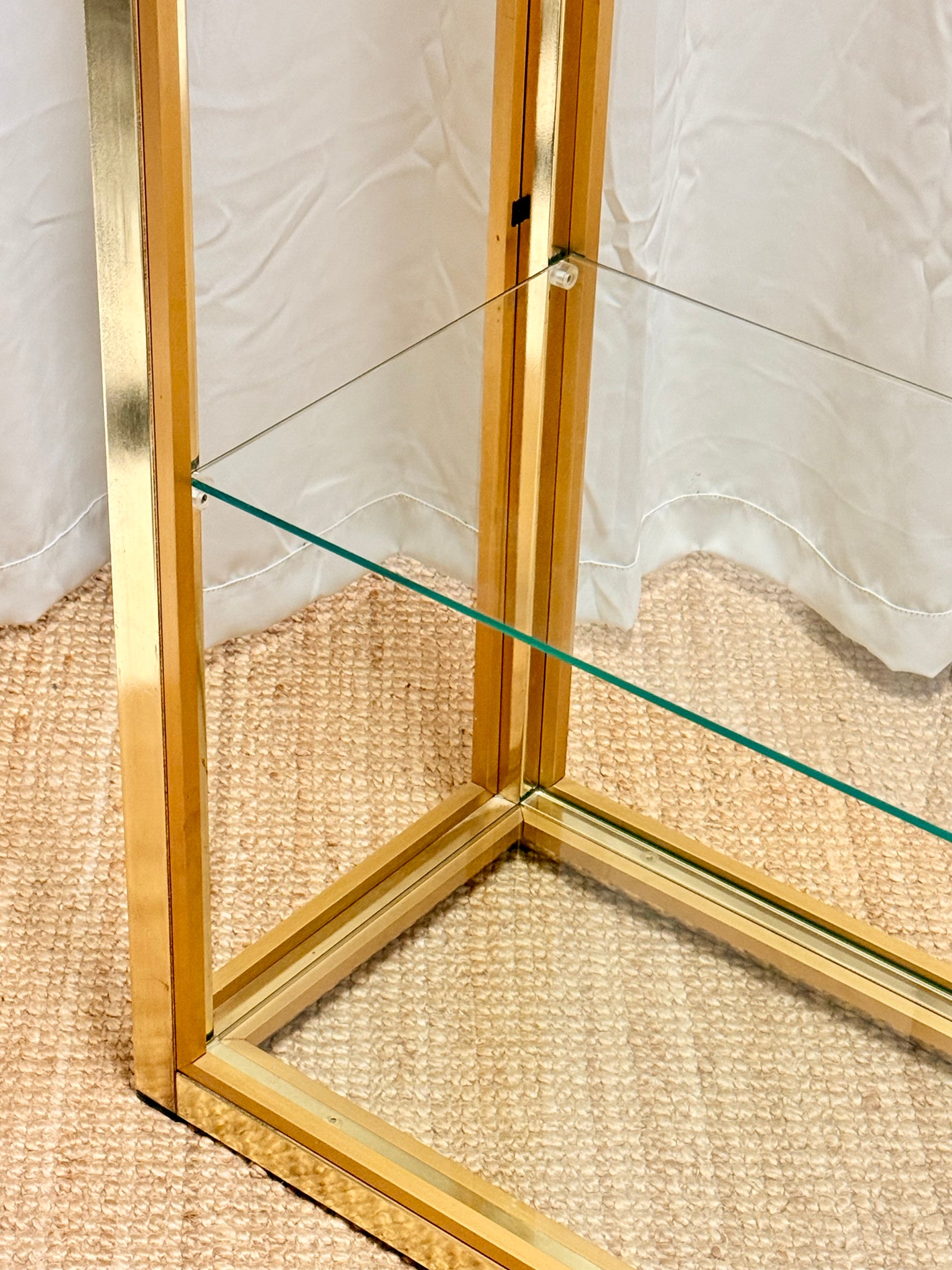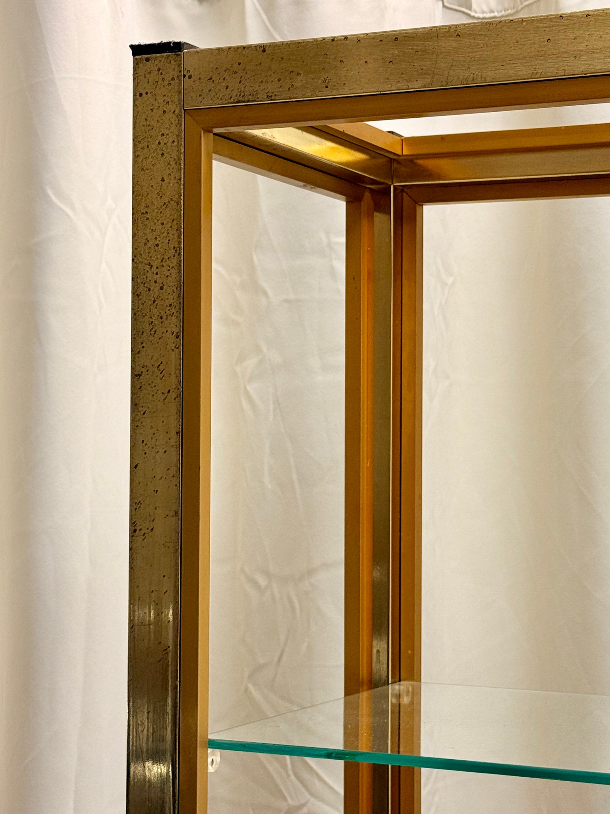 Italian Mid-Century Gilt Brass Etagere by Renato Zevi - Vintage Glass Shelves 202cm